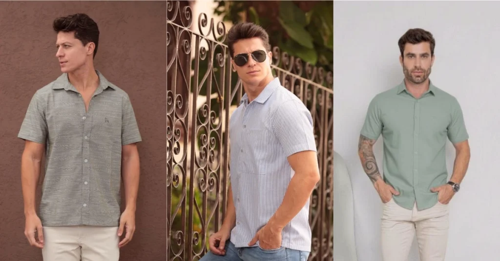 As cores também exercem papel importante. Tons claros, verdes suaves, azuis e variações naturais combinam bem com o verão e facilitam composições. Assim, a camisa masculina se torna uma peça-chave, capaz de acompanhar diferentes momentos do dia sem perder o estilo.
