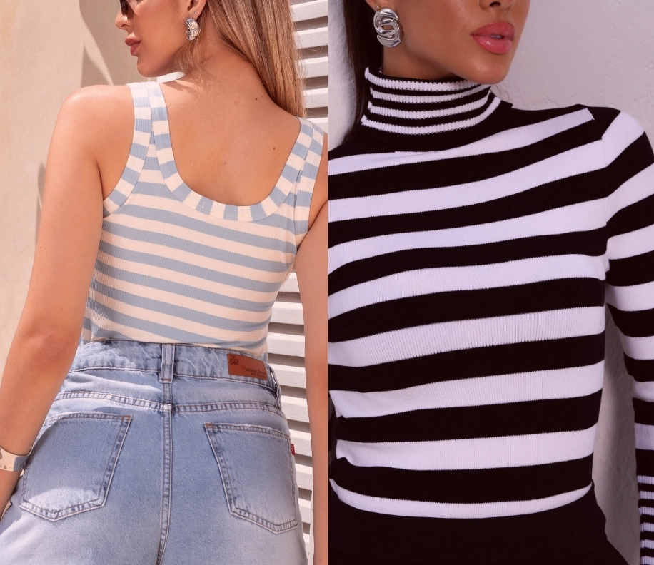 As roupas listradas têm o poder de transformar um visual básico em algo cheio de atitude, equilíbrio e sofisticação. Presentes