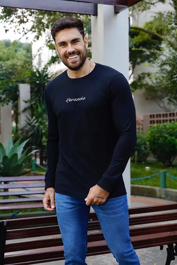 Perfeita para os dias em que a temperatura cai um pouco, a camiseta de manga longa Zurique é moderna na medida certa. Os punhos estampados trazem um toque de originalidade ao visual, quebrando a monotonia do preto liso.