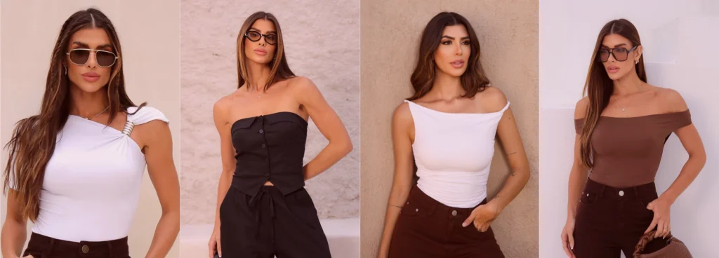 Com tecidos leves, modelagens modernas e detalhes que valorizam o colo e a silhueta, as blusinhas garantem frescor nos dias quentes e protagonismo nos looks.