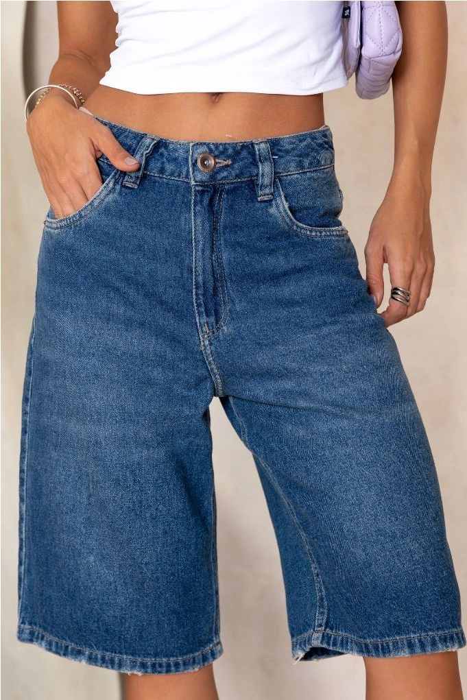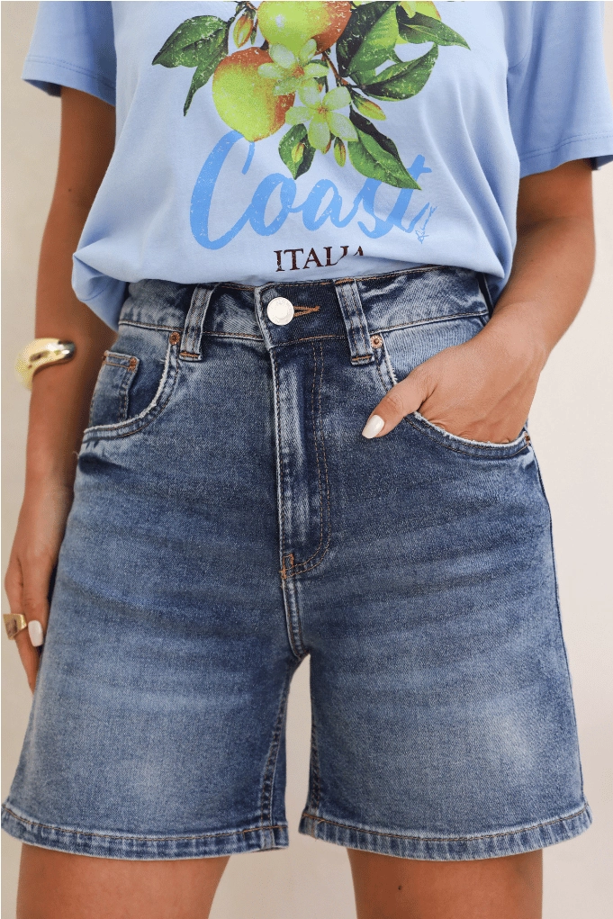 Em shorts jeans, dobrar levemente a barra é uma dica simples que cria uma pegada casual e estilosa, perfeita para o dia a dia ou um passeio de verão.