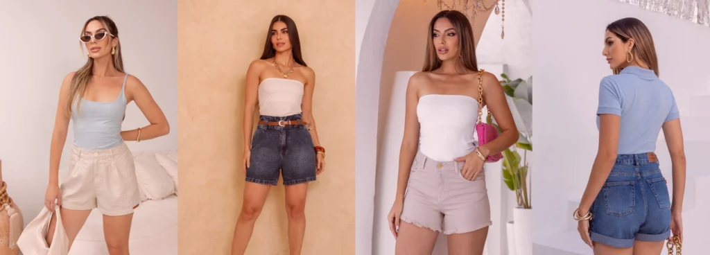 Um dos segredos do estilo está em saber equilibrar formas. Se o shorts verão 2026 é mais solto ou volumoso, combine com tops ajustados ou croppeds. Já as peças mais justas na parte de baixo funcionam bem com blusas amplas ou camisas leves soltas.